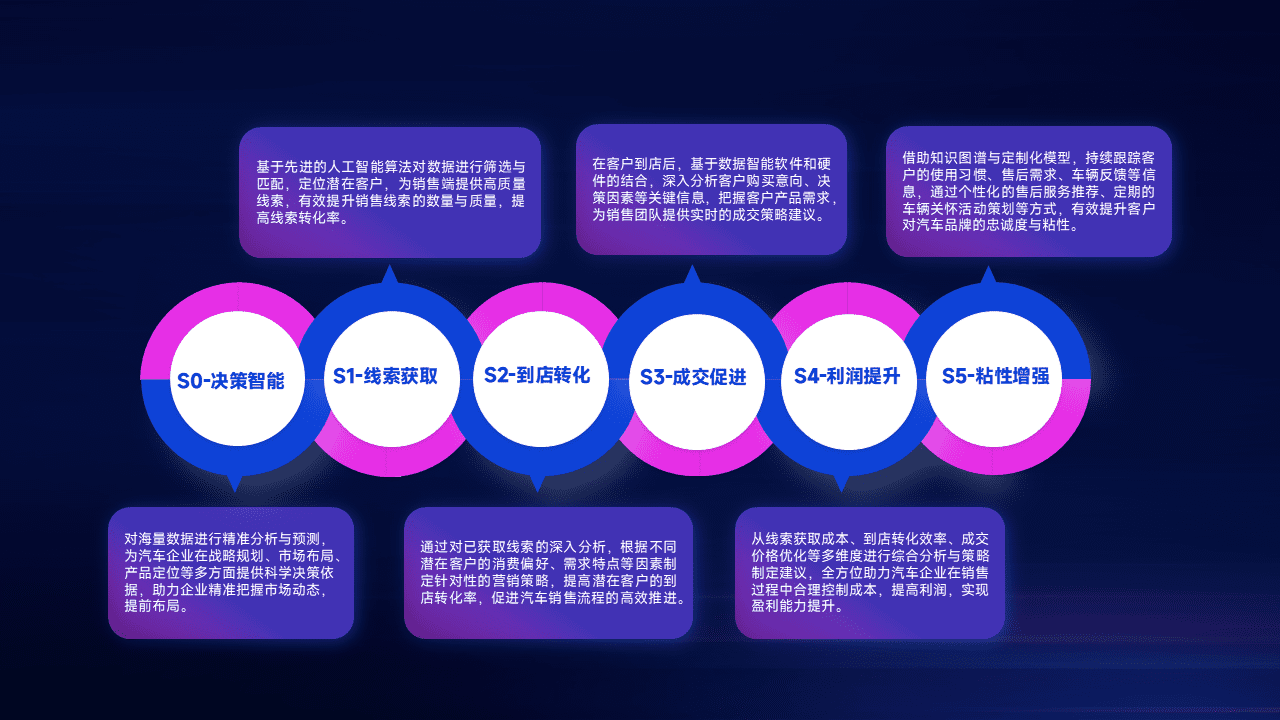 通过拓宽潜在客户来源、、优化线索分配并提高到店转化率,,以增强销售效率。。。同时,,,利用线索数据不断优化分析模型,,有效提升转化率,,,,扩大营销影响力。。。。